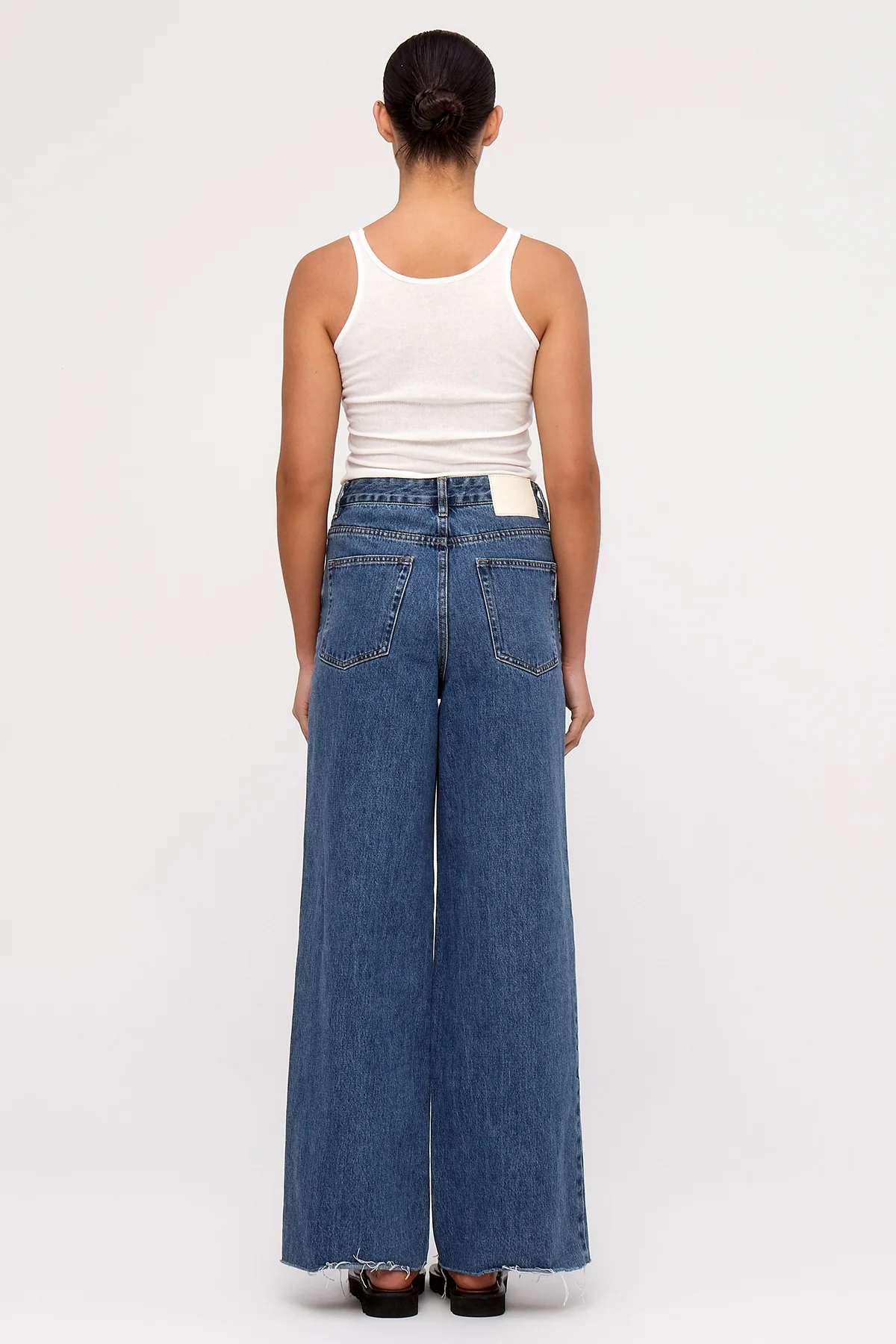 A vintage-inspired fit with a mid-rise waist and a relaxed wide leg that's straight through the hip and wider at the hem. Made from durable rigid denim in a light wash, it's finished with a zip fly, brushed metal hardware, and a vegan jacron patch.