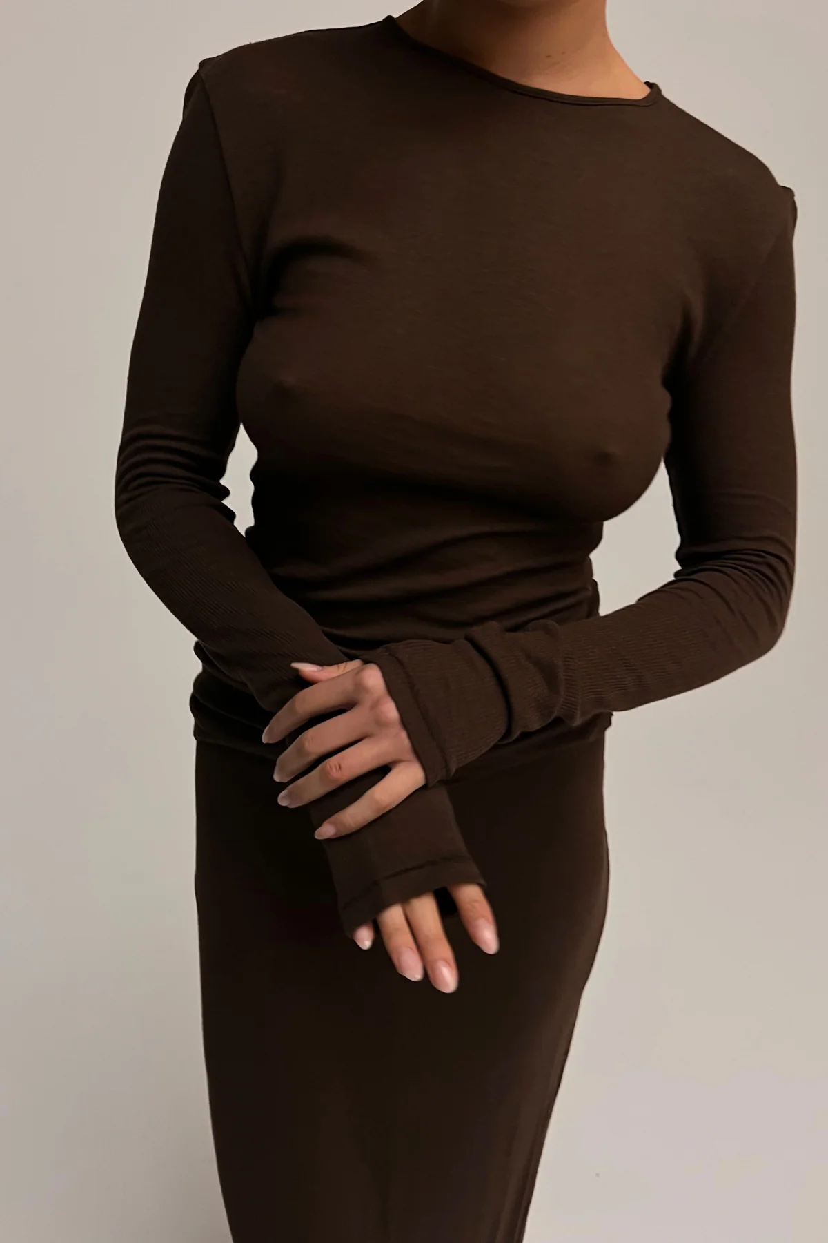 Rib Hemp Jersey Long Sleeve Top - Chocolate