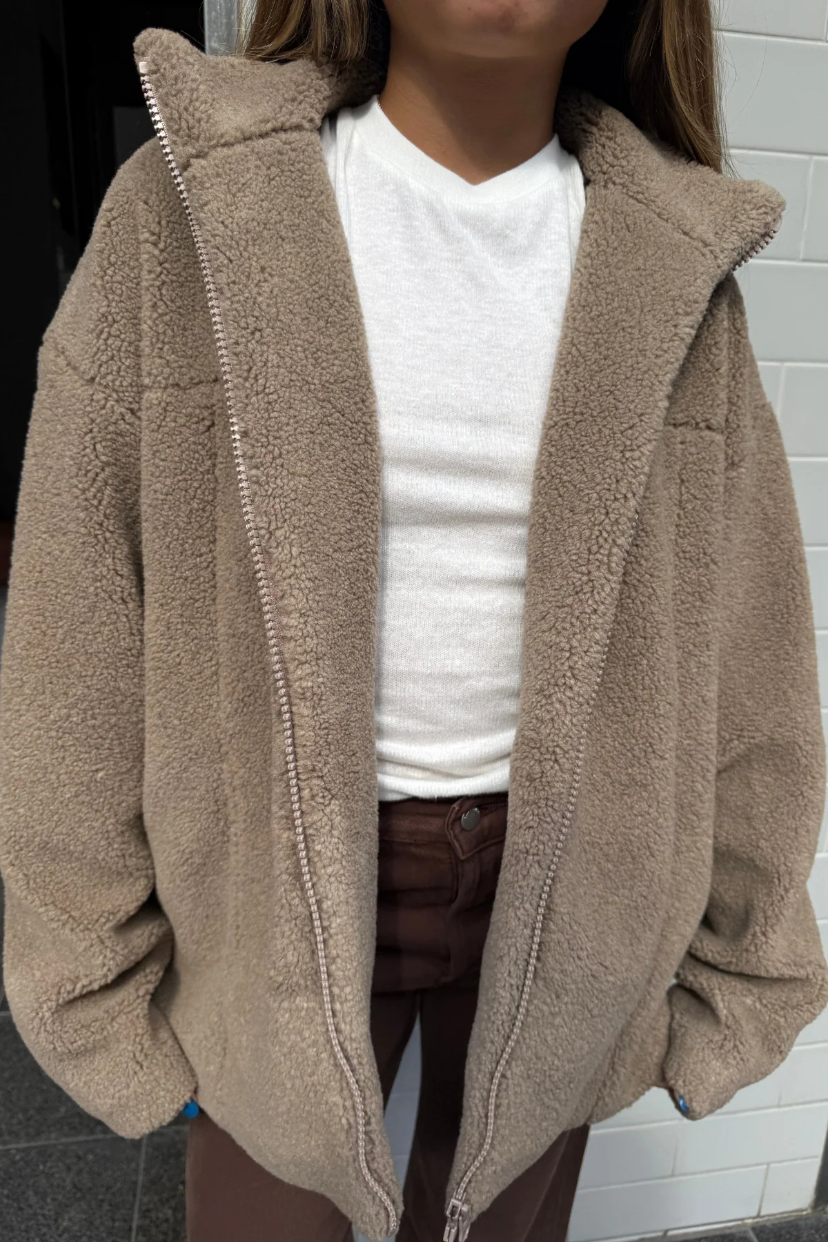A debut outerwear piece, designed with an oversized fit and a luxuriously soft, buttery feel. It features a high collar for added warmth, long sleeves, and a front zip closure. This versatile jacket can be effortlessly styled with casual basics and denim or layered over ZZ sportswear. A timeless addition to your wardrobe, perfect for years of cozy comfort.