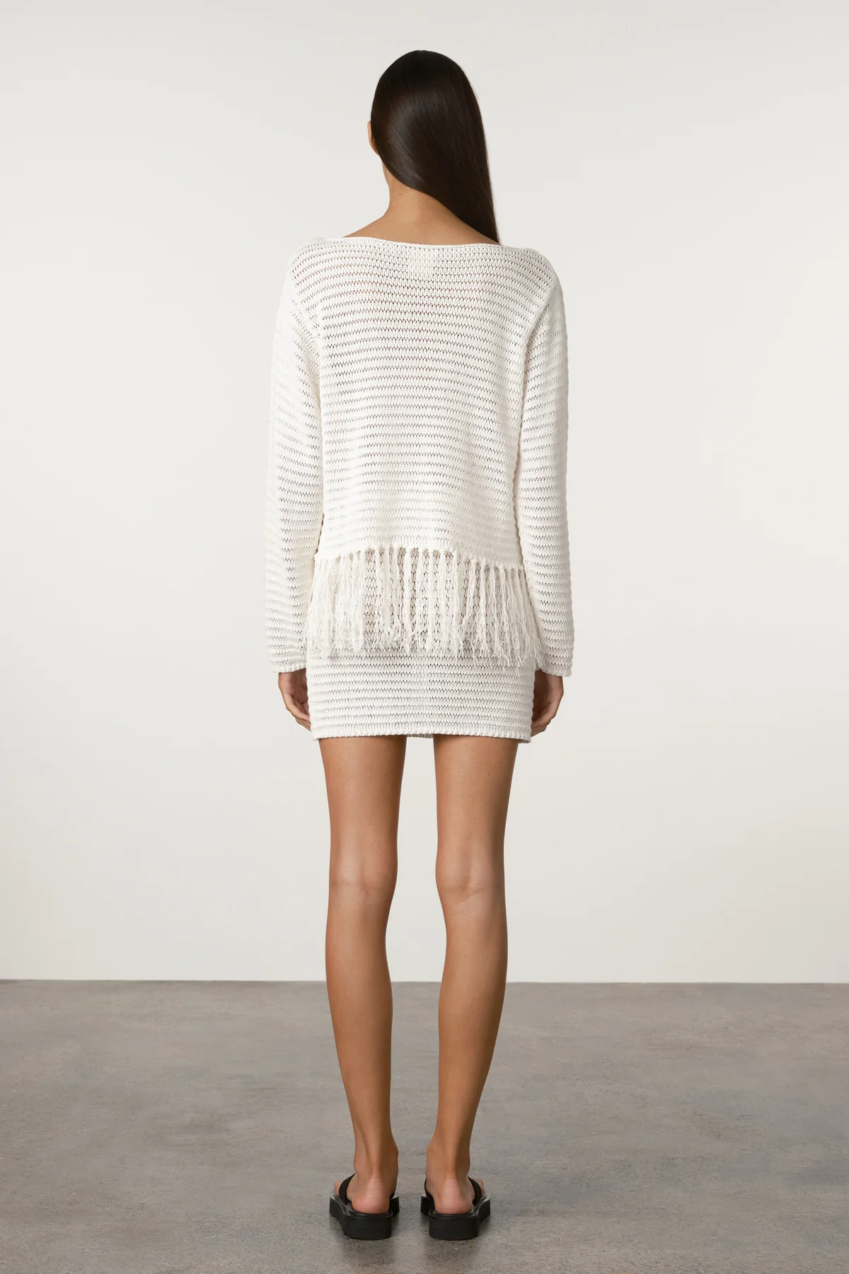 A modern resortwear essential, this slim-fitting mini skirt is crafted from a mid-weight crochet-style knit, offering both texture and structure. Designed with a functional drawcord at the waist and a playful mini length, it’s perfect for resort styling. Pair with the Crochet Knit Top for a coordinated look.